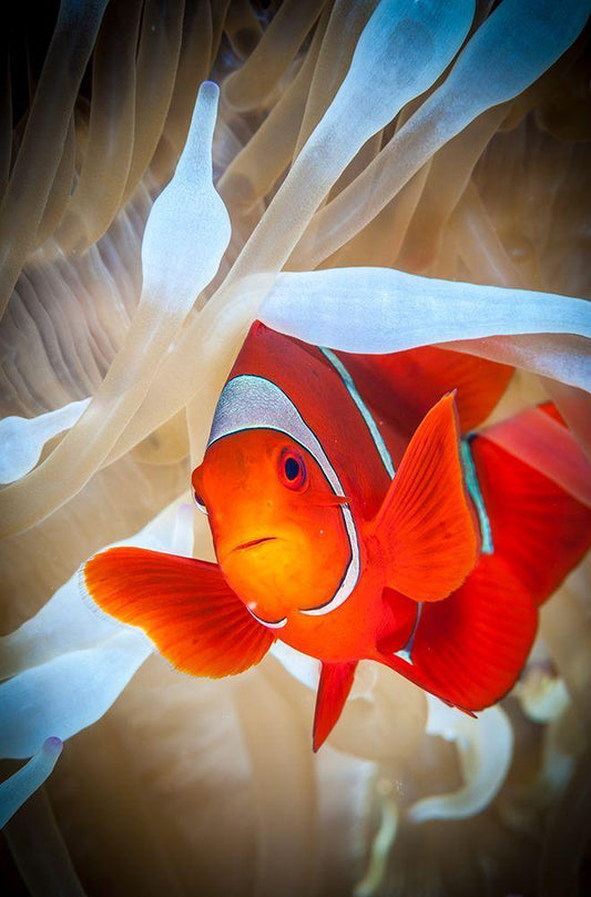 Clownfish Defends His White Anemone Black Ornate Wood Framed Art Print with Double Matting by Abadschieff, Jan