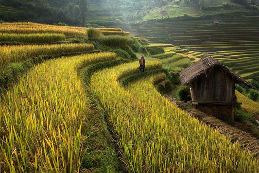 Riceterrace ( Vietnam) Black Ornate Wood Framed Art Print with Double Matting by Intarob, Sarawut