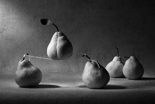 Portrait Of A Girl With A Pear Black Ornate Wood Framed Art Print with Double Matting by zanzib