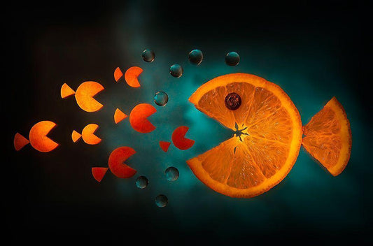 Orange Fish Black Ornate Wood Framed Art Print with Double Matting by Ianeva, Aida