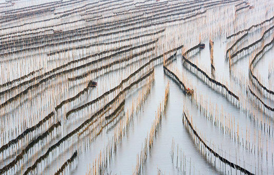 Harvesting Kelp Black Ornate Wood Framed Art Print with Double Matting by Zhou, Xinhua