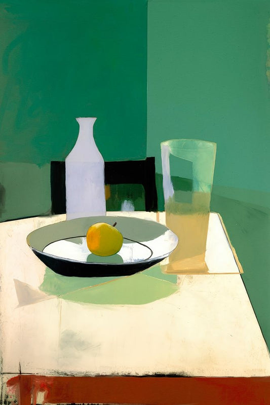 Still Life With Apple Black Ornate Wood Framed Art Print with Double Matting by Treechild