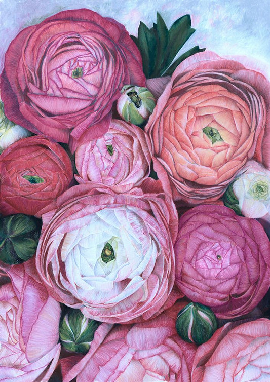 Arleth ranunculus bouquet in cold pink Black Ornate Wood Framed Art Print with Double Matting by Laiz Blursbyai, Rosana