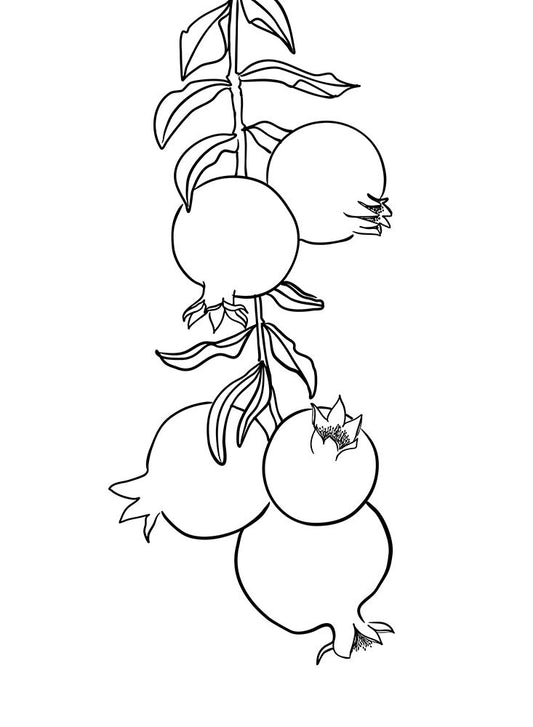 Line art pomegranates Black Ornate Wood Framed Art Print with Double Matting by Laiz Blursbyai, Rosana