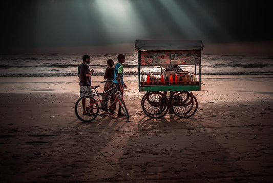 Coloured Ice Seller ( Chuski) Black Ornate Wood Framed Art Print with Double Matting by Singh, Anita