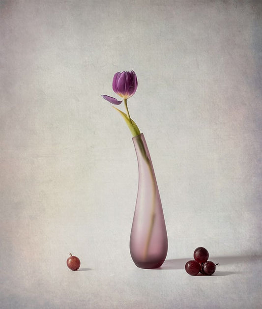Tulip And Grapes Black Ornate Wood Framed Art Print with Double Matting by G, May