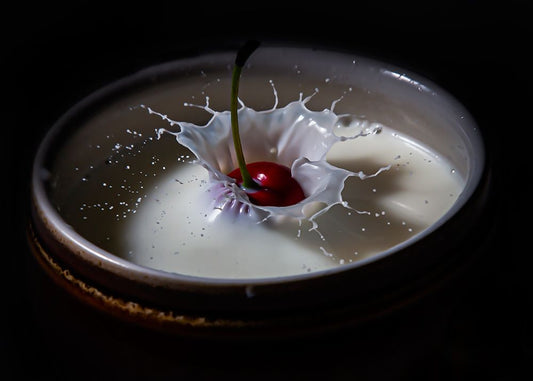 The cherry in a drop of milk Black Ornate Wood Framed Art Print with Double Matting by Yacov, Oren
