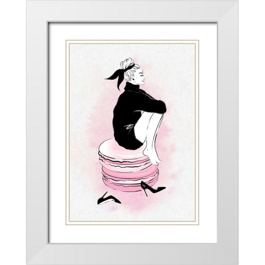 Macaron Girl White Modern Wood Framed Art Print with Double Matting by Martina