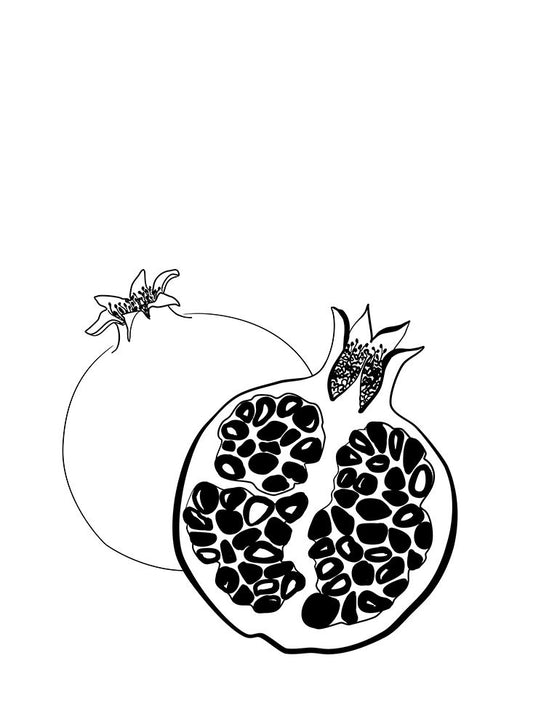 Pomegranate line art White Modern Wood Framed Art Print with Double Matting by Laiz Blursbyai, Rosana