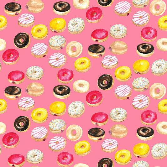 Watercolor donuts pattern in hot pink White Modern Wood Framed Art Print with Double Matting by Laiz Blursbyai, Rosana