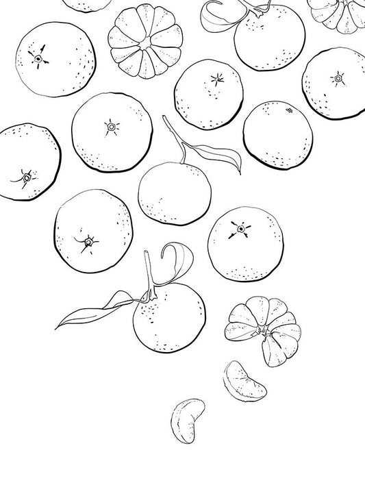 Line art tangerines White Modern Wood Framed Art Print with Double Matting by Laiz Blursbyai, Rosana