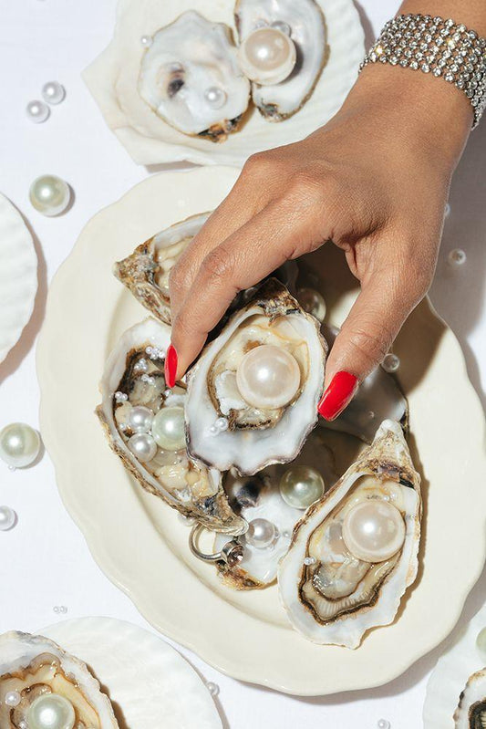 Oyster a Pearls No 01 Black Ornate Wood Framed Art Print with Double Matting by 1x Studio III