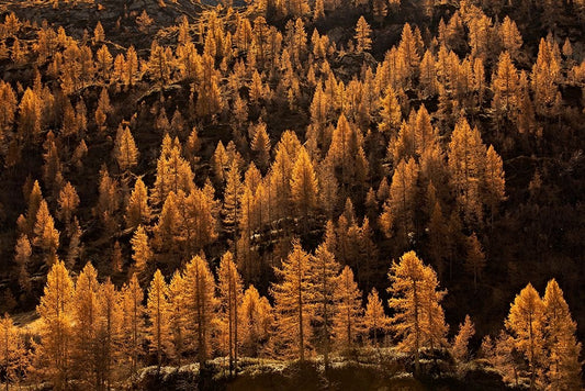 Larches In Autumn Black Ornate Wood Framed Art Print with Double Matting by Manzoni, Michel
