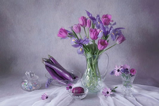 Violet Delight Black Ornate Wood Framed Art Print with Double Matting by Jacobs, Lydia