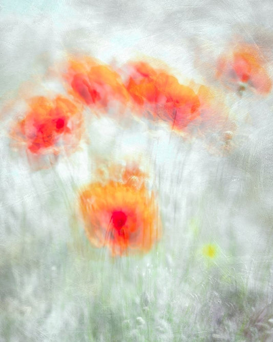 Red Corn Flowers Black Ornate Wood Framed Art Print with Double Matting by Behzad, Majid