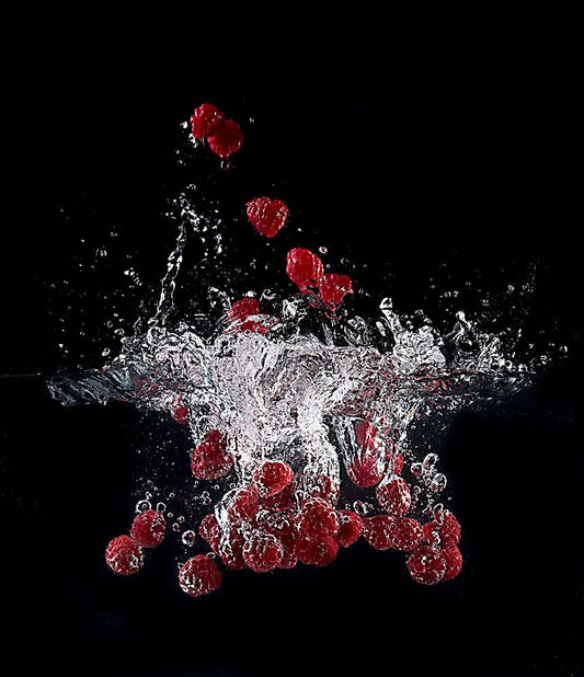 Raspberry Splash Black Ornate Wood Framed Art Print with Double Matting by Stefan, Mogyorosi
