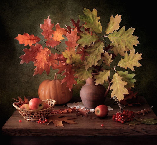 Fallen Leaves Black Ornate Wood Framed Art Print with Double Matting by Barkow, Brig