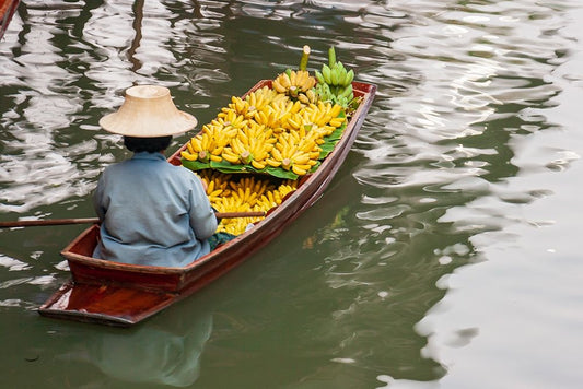 Damnoen Saduak Floating Market-Bangkok-Thailand-Woman with boatload of bananas Black Ornate Wood Framed Art Print with Double Matting by Haseltine, Tom