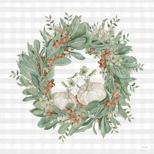 Fall Wreath Black Ornate Wood Framed Art Print with Double Matting by Jacobs, Cindy