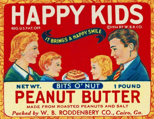 Happy Kids Bits o Nut Peanut Butter Black Ornate Wood Framed Art Print with Double Matting by Retrolabel