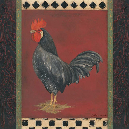 Black Rooster Black Ornate Wood Framed Art Print with Double Matting by Marrott, Stephanie