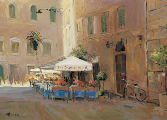 Cafe Roma Black Ornate Wood Framed Art Print with Double Matting by Stevens, Allayn