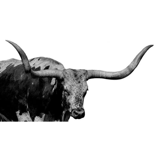 Long Horn Bull Black Modern Wood Framed Art Print with Double Matting by Phillip, Jamie