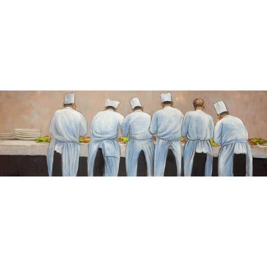Cooks Chefts Working Together Black Modern Wood Framed Art Print with Double Matting by Atelier B Art Studio