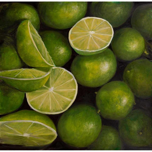 Basket of Limes Fruit Black Modern Wood Framed Art Print with Double Matting by Atelier B Art Studio