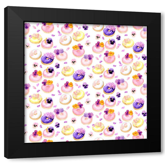 Floral watercolor donuts pattern Black Modern Wood Framed Art Print with Double Matting by Laiz Blursbyai, Rosana