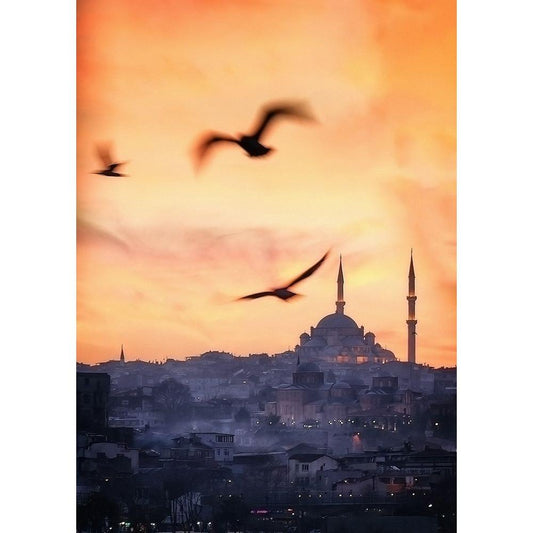 Sunset in Istanbul Black Modern Wood Framed Art Print with Double Matting by Lopez, Bartolome