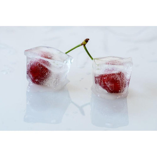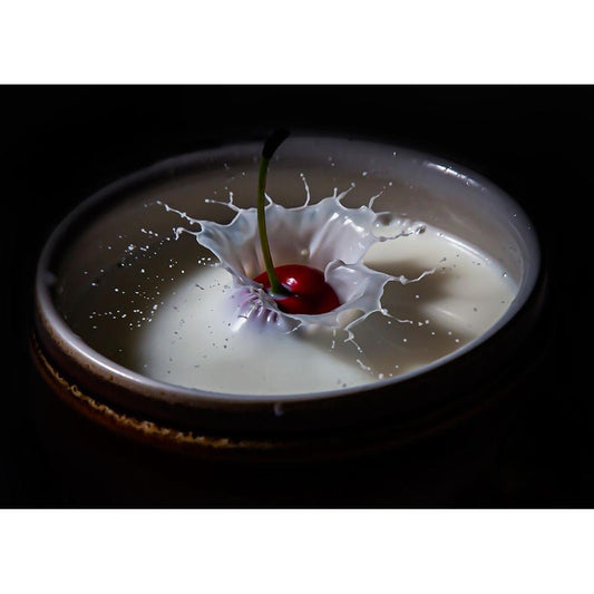 The cherry in a drop of milk Black Modern Wood Framed Art Print with Double Matting by Yacov, Oren