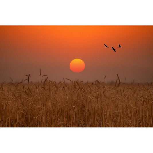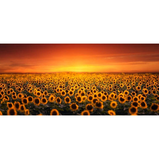 Sunset On Sunflower Field Black Modern Wood Framed Art Print with Double Matting by Seo, Tiger