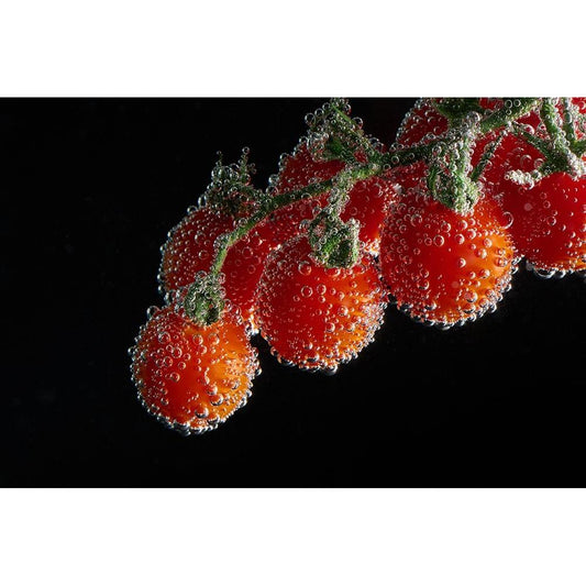 Red Cherries Black Modern Wood Framed Art Print with Double Matting by Uplusmestudio