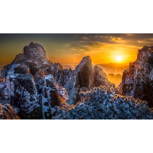 The Yellow Mountain Black Modern Wood Framed Art Print with Double Matting by Lim, Jack