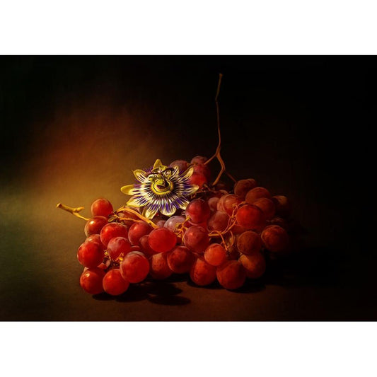 Red Grapes And Passion Flower Black Modern Wood Framed Art Print with Double Matting by Shumilova, Ludmila