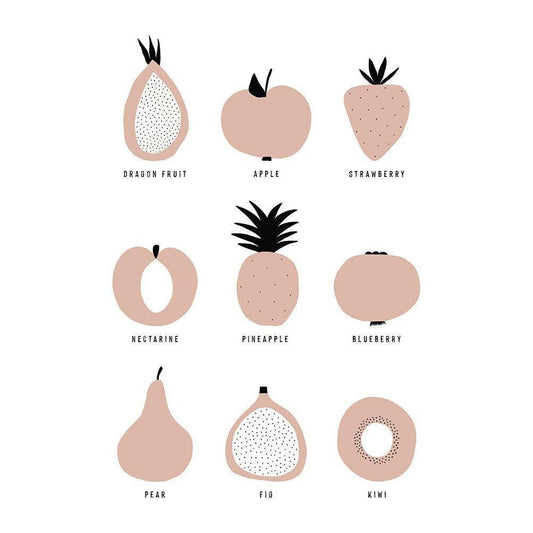 Pastel Fruits Black Modern Wood Framed Art Print with Double Matting by Sawall, Anastasia