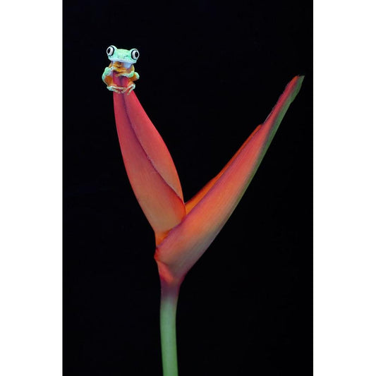 Lemur Tree Frog on a Tropical Stem Black Modern Wood Framed Art Print with Double Matting by D Lester, Linda
