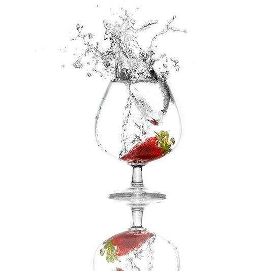 Strawberry fall into the milk trap Black Modern Wood Framed Art Print with Double Matting by Qian Guo, Grace