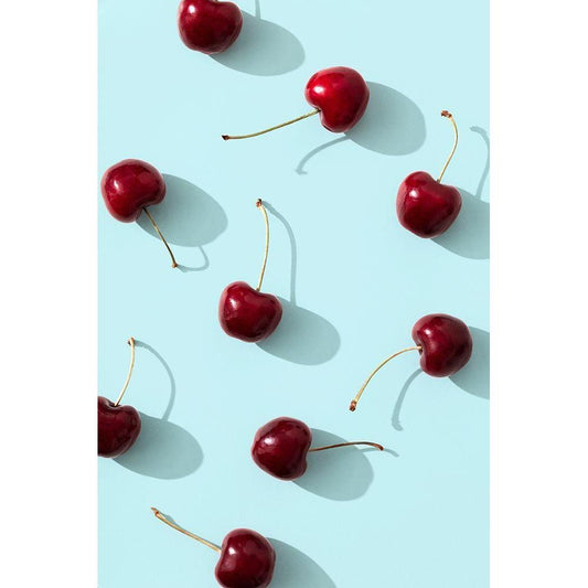 Cherries on turquoise background Black Modern Wood Framed Art Print with Double Matting by 1x Studio III
