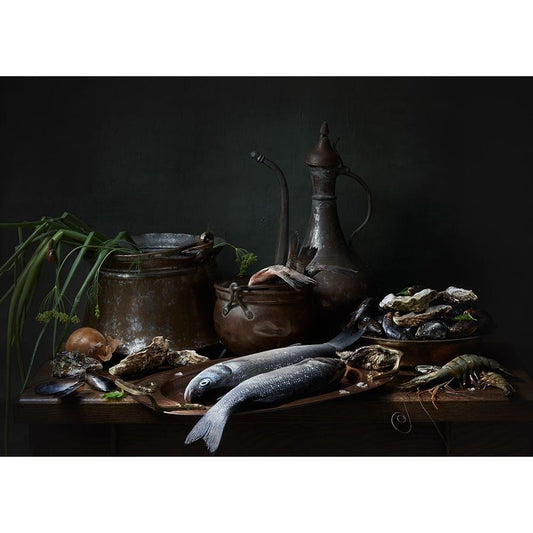 Catch Of The Day Black Modern Wood Framed Art Print with Double Matting by Alena