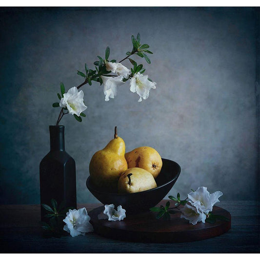 Pears A Flowers Black Modern Wood Framed Art Print with Double Matting by Zhou, Fangping