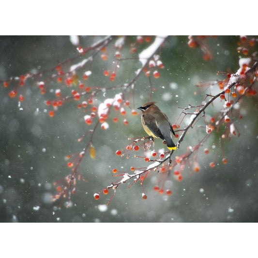 First Snow Black Modern Wood Framed Art Print with Double Matting by Chen, Hong