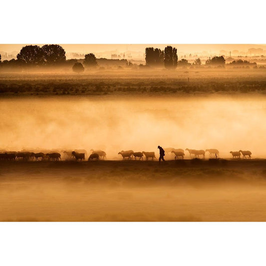 Shepherd-Hard Life Black Modern Wood Framed Art Print with Double Matting by Durmusceylan