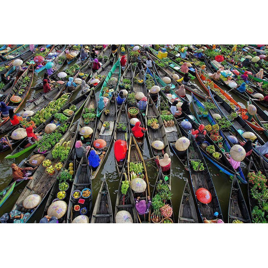 Lokbaintan Floating Market Festival Black Modern Wood Framed Art Print with Double Matting by Maududdin, Fauzan