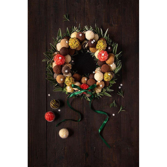 Truffles Christmas Wreath Black Modern Wood Framed Art Print with Double Matting by Popescu, Diana