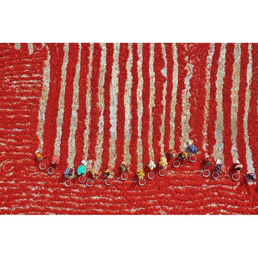 Drying Red Chilies Black Modern Wood Framed Art Print with Double Matting by Khan Ronnie, Azim