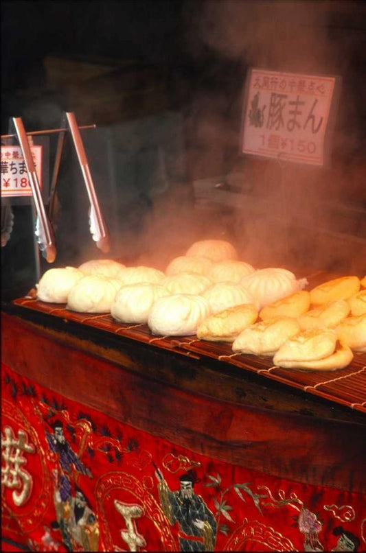Japan, Kobe Japanese potsticker dumplings White Modern Wood Framed Art Print with Double Matting by Ross, Nancy , Steve