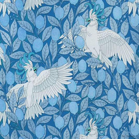 Parrots and Lemons White Modern Wood Framed Art Print with Double Matting by Seven Trees Design