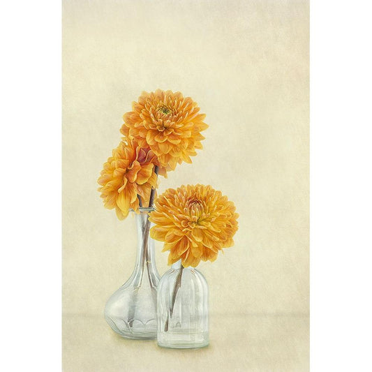 3 Dahlias Black Modern Wood Framed Art Print with Double Matting by Gray, Gaille